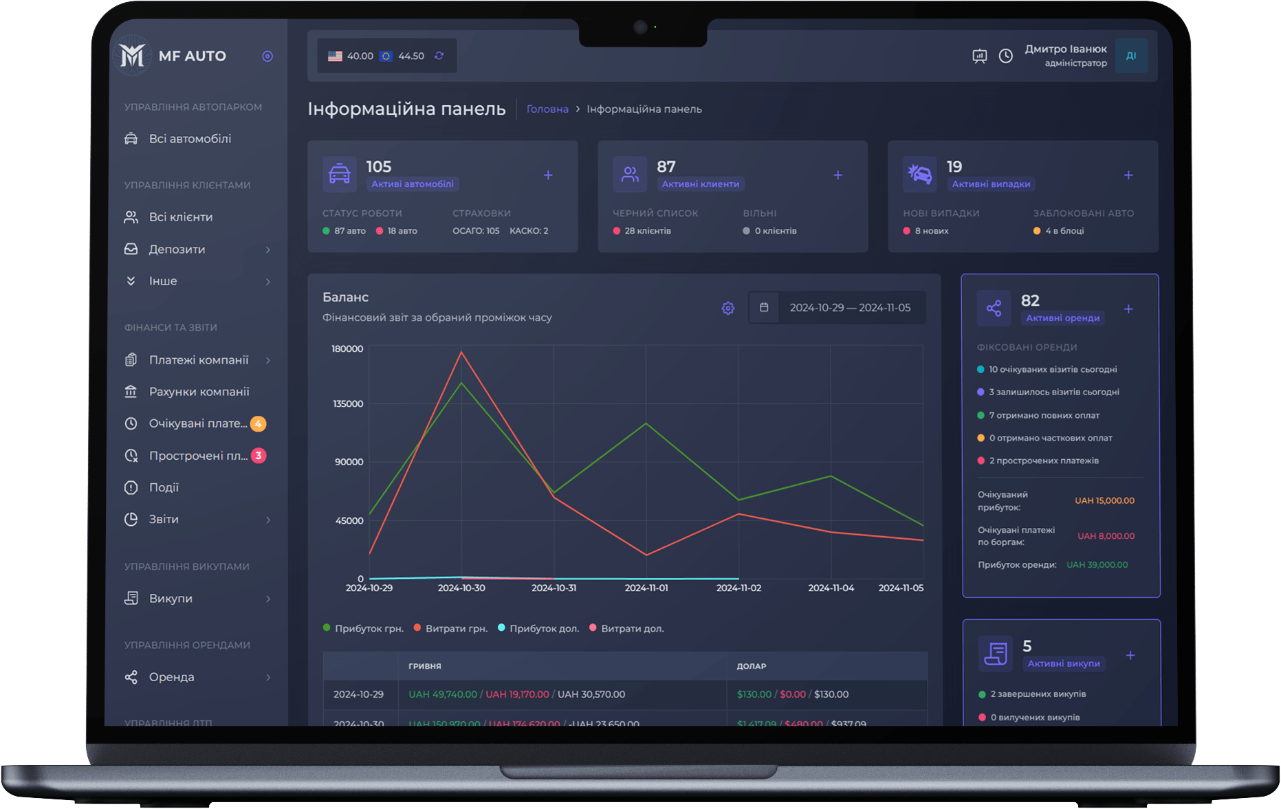 MF AUTO - это решение для автопарков разного рода и размера, занимающихся арендой автомобилей и/или лизингом (выкупом).