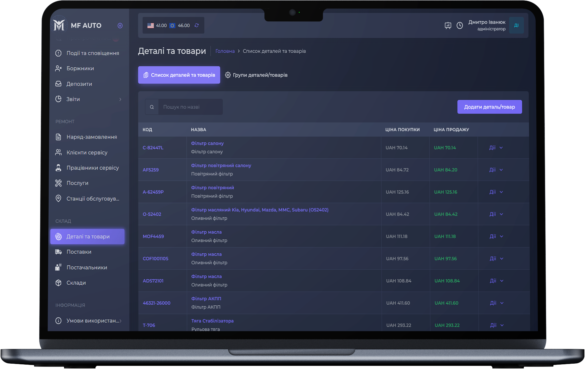 Создавайте карточки товаров/запчастей, указывайте информацию о них, изменяйте наличие.